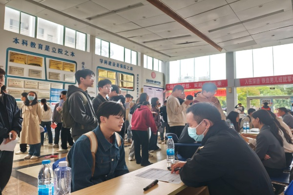 在现场,众多学生积极与公司人员沟通,就公司前景、提供的薪水、面试状况等内容提出了问题,公司人员也十分积极且耐心地一一解惑,现场交谈声此起彼伏,处处充满了选择与机遇。