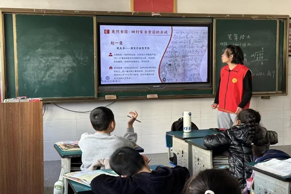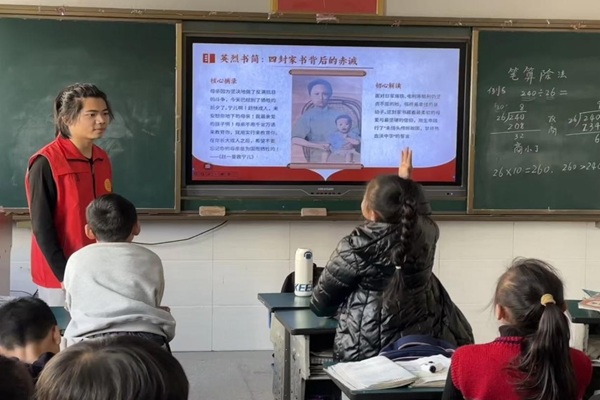 在诵读环节,支教队员带领孩子们逐字逐句朗读家书中的经典片段,并耐心解释其中含义。孩子们在朗朗书声中,逐渐体会到家书背后深沉的情感与坚定的信仰。不少孩子在分享感受时动情地说:“原来家书不只是写给家人的,也是写给祖国的。”