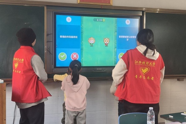 12月17日下午,江西财经大学计算机与人工智能学院青禾支教队前往岭背小学,开展了以“香港澳门回归”为主题的支教活动。本次活动以香港澳门回归——血脉相连,共赴未来为核心载体,通过系统讲解与丰富互动,为乡村学子呈现了一堂史料详实、情感充沛的爱国主义教育课,旨在汇聚红色力量,以优质教育滋养乡村孩子的精神家园。