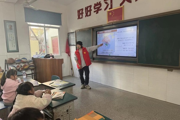 支教队员们首先从“追溯历史——港澳台问题由来”入手,以清晰的时间脉络与历史地图,向学生们阐明了相关问题的历史背景。随后,支教队员们重点讲解了“伟大构想——‘一国两制’的创举”,用生动的比喻帮助孩子们理解这一方针的核心内涵与深远意义。在“成功实践——香港澳门回归祖国”部分,支教队员们通过播放珍贵的历史回归影像,再现了那一令人心潮澎湃的历史时刻,强调了国家统一的神圣与必然。最后,“再谱新篇——保持香港澳门长期繁荣稳定”环节,展示了回归后港澳在祖国支持下取得的璀璨成就,让孩子们对“一国两制”的强大生命力有了直观感受。