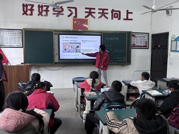 为巩固学习成果,支教队员设计了知识问答趣味游戏。题目涵盖朝鲜问题关键节点、抗美援朝重要事件、长津湖战役英雄事迹等内容,小朋友们积极举手、踊跃抢答,在轻松愉快的氛围中加深了对历史知识的记忆与理解,激发了大家的学习热情。