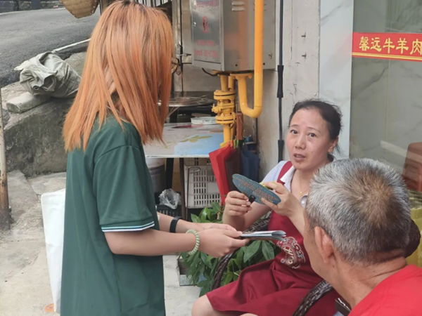 在开阳县,实践队将服务延伸至基层社区。队员们携带教育部语言文字应用管理司共青团中央青年发展部编印的《普通话推广指南》,深入居民聚集区设立流动服务站。面对老年群体,重点解决医疗文书阅读障碍,将药品说明书中的专业术语如“口服剂量”、“禁忌事项”按照普通话对照解读;针对学龄儿童家庭,则提供入学材料填报指导,规范表述“监护人信息”、“健康状况”等关键内容。活动巧妙结合医保等民生政策宣传进行场景教学,累计服务居民300余人次,发放手册200余份,切实打通了语言服务的“最后一公里”。