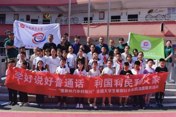 为深入贯彻落实国家“推普助力乡村振兴”战略部署,响应教育部、国家语委号召,2025年7月下旬至8月初,江西财经大学重点立项团队 “语泽黔乡”推普实践队奔赴贵州省开阳县、黔东南州肇兴侗寨与郎德苗寨,开展了一场跨越城乡、聚焦多群体的深度推普实践。依托校地协同机制,实践队创新采用分层教学、场景实训模式,精准破解“一老一小一经营”核心群体的语言困境,为国家通用语言文字普及、促进民族团结、服务地方发展贡献了青春智慧与力量。