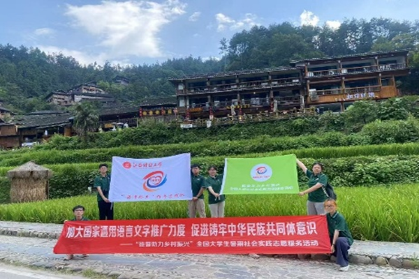 从开阳县校地协同的机制构建,到肇兴侗寨风雨桥畔、郎德苗寨古井边和吊脚楼内的温情教学与场景实训,“语泽黔乡”推普实践队以国家通用语言文字为钥匙,成功解锁了少数民族地区亲情联结的障碍、产业发展的瓶颈与文化传承的活力。开阳县教育局相关负责同志高度评价:“高校专业力量的下沉,为乡村语言生态注入了可持续的活力!”夕阳下,侗寨巍峨的鼓楼飞檐与苗寨古老的风雨桥,共同见证了这群青年学子如何用普通话架起沟通的桥梁,将散落在黔山秀水间的希望星火串联,照亮了民族团结进步与乡村全面振兴的广阔未来。(图文/江西财经大学“语泽黔乡”推普实践队 一审/李昱 二审/廖波 三审/张志军)
