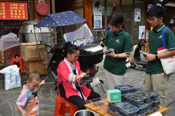 队员们精心设计“游客询价与报价”、“特色产品讲解(如‘这侗布花纹代表吉祥如意,纯手工制作’)”、“民宿入住指引”等高频实用场景剧本,通过角色扮演、情景模拟和反复跟读进行实训。侗布店主杨女士反馈:“以前怕说错不敢多讲,现在学了实用的话,能主动介绍,客人听得明白,我做生意信心足多了!”这种“即学即用”的模式显著提升了经营户对接外部市场的能力。