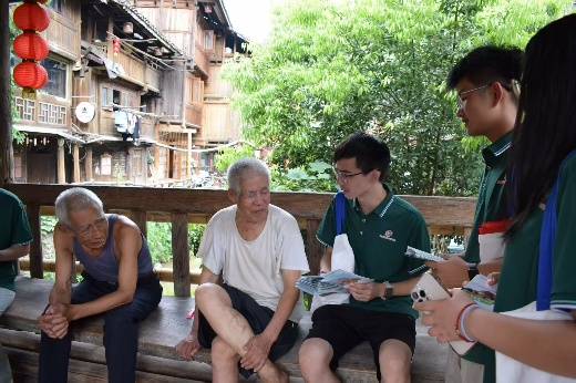 温情化解亲情隔阂(聚焦老年群体):在肇兴侗寨(侗族人口超90%)和郎德苗寨,语言障碍常导致留守老人与在外务工子女沟通困难。队员们深入田间地头、火塘边、风雨桥廊、村民家中甚至古井旁,摒弃刻板教学,采用“聊天式”浸润法。