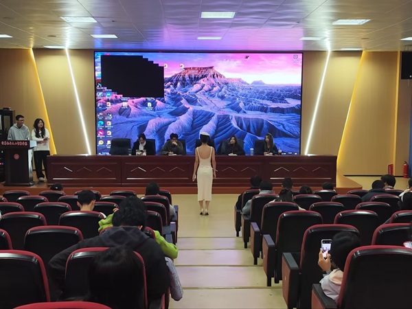 本次初赛赛制明确,流程规范有序。参赛选手应到 25 人,实到 23 人,大众评委与专业评委均悉数到场,确保了赛事的公平公正与顺利推进。比赛中,选手们按既定次序依次登台,先后完成自我介绍、30 秒体态风度展示及对复赛主题 “花开时” 的创意构想阐述三大环节。舞台上,选手们精神饱满、自信昂扬,或从容优雅展现独特气质,或活力四射传递青春能量,肢体语言自然得体,台风稳健大方,充分展现了江财学子的良好精神面貌。台下观众文明观赛,现场秩序井然,无喧闹议论现象,为选手们营造了良好的展示氛围。
