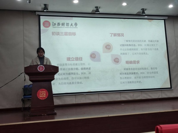 张钰琼老师围绕“有效沟通与共情表达”展开培训。她从沟通三要素入手,深入浅出地介绍了非暴力沟通的核心技巧,并引导学生理解“共情”与“同情”的本质区别。“共情是心与心的对接,而不是简单的情绪附和,”她指出,“心理委员要做的,是搭建一座理解的桥梁,而不是急于解决问题。”